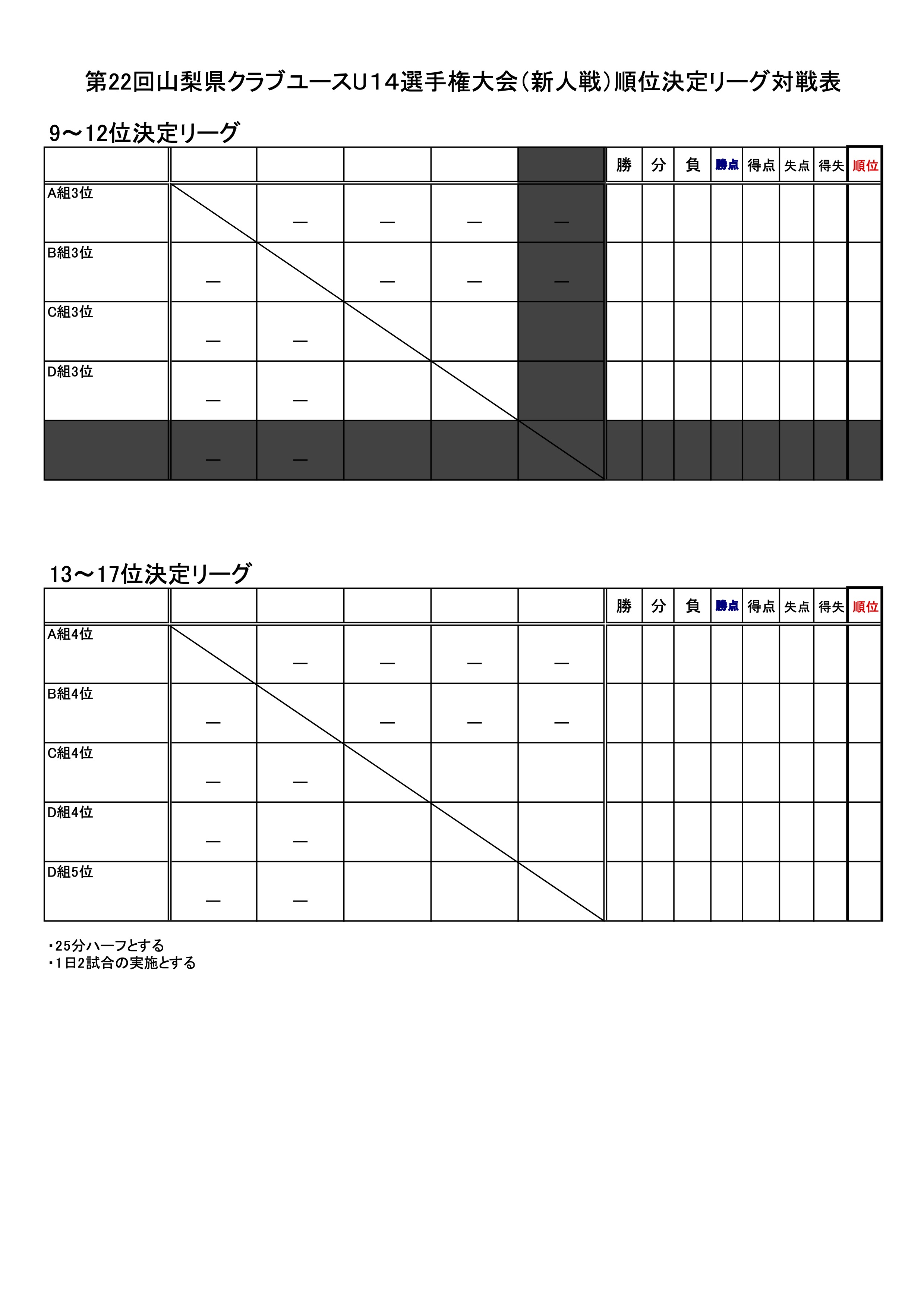 【ジュニアユースU14】のクラブユース新人戦組み合わせと日程です。ご確認ください。